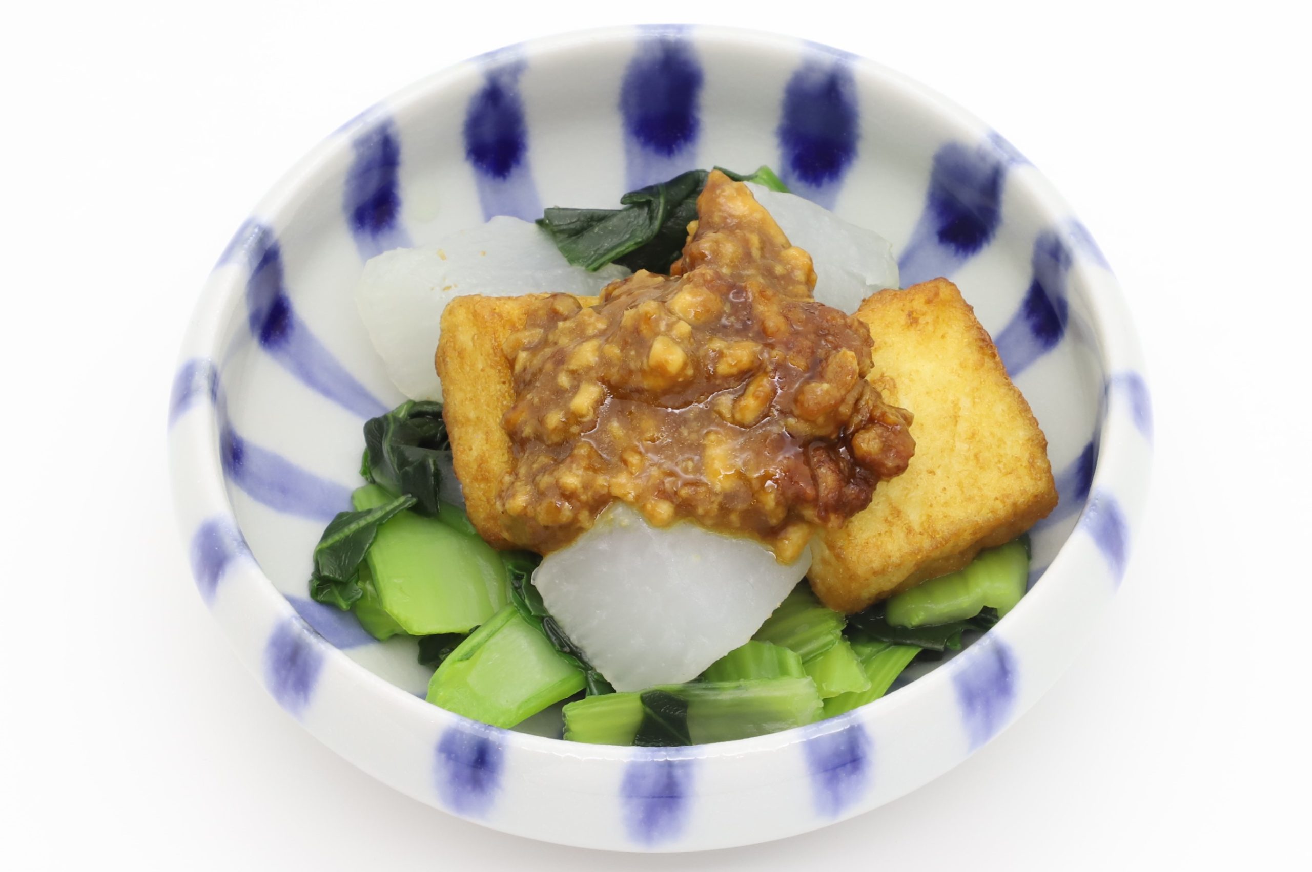 「Cook Do®」甘口麻婆豆腐用を使用することで、スチコンでほどよいとろみのそぼろあんを作ることができます。