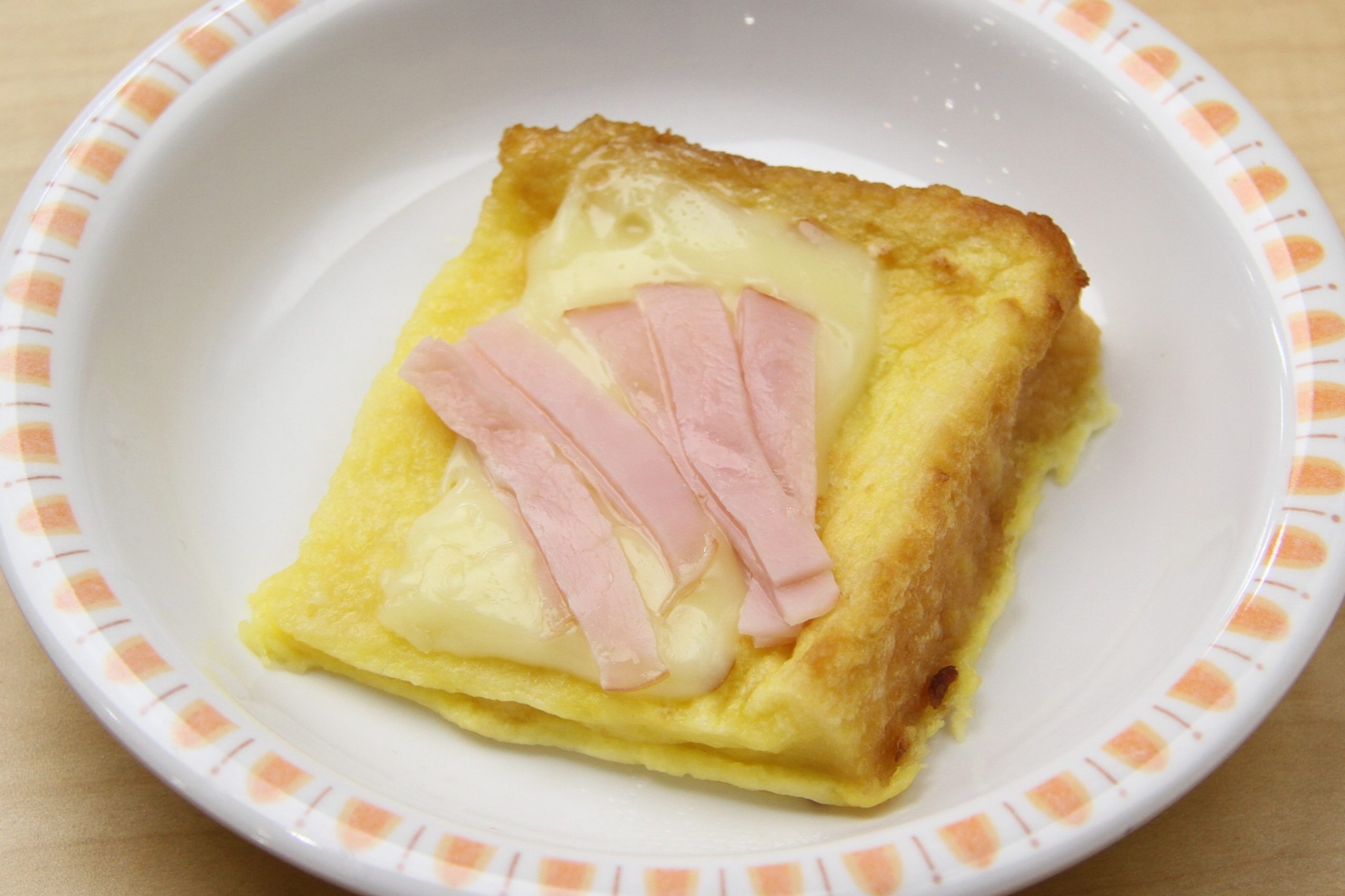 「クノール® クイックサーブ® スープ」コーンクリームを使用することで、簡単にほのかなコーン風味のフレンチトーストが作れます。チーズともよく合います。