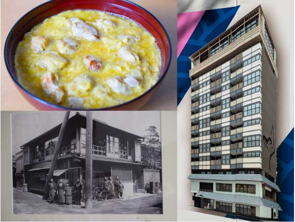 山田氏:創業は1760年、江戸中期になります。幕府の御鷹匠(おたかじょう)が興した軍鶏料理が始まりで、玉ひでの軍鶏鍋は、江戸時代より浅い鍋で煮る「すき焼き」の元祖とも言われています。親子丼は、すき焼きの〆として、あるお客様が、残った割り下を卵でとじて、ご飯にのせて食べていたのを見た5代目の妻とくが、明治24年に考案したものです。当時は、出前のみの限定でしたが、昭和56年から店で提供するようになりました。今、本店は休業中で、新しいビルが秋に完成します。親子丼や鳥のすき焼きなど鳥料理はもちろん、宴会などいろいろな形で、日本橋人形町の町や落語など江戸の文化を楽しんでいただけるようなイベントができればと考えています。