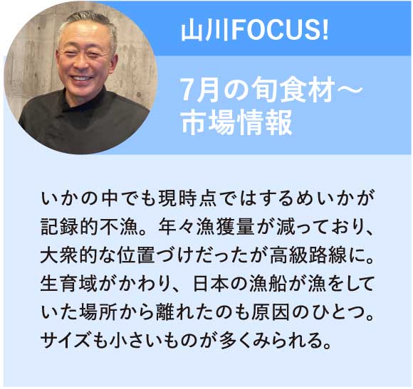 ①いかをゲソと胴に分け、胴からワタを取り、手早く水洗いし、水分をよく拭き取り、ゲソは粗みじん切りにする。