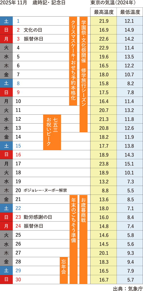 旬の「かぶ」、その他の食材、 市場情報・祭事行事と東京の気温