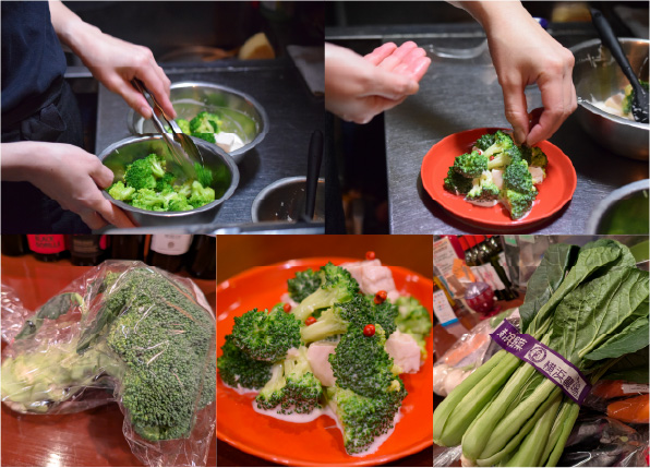 ⑤器に④を盛り付け、②をかける。