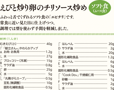 「常食の人にも、ソフト食の人にも、同じメニューで楽しく食事をしてもらいたい」「ソフト食にすると栄養価がさがる」「見た目がおいしそうに見えない」…そんなお悩みを解決!