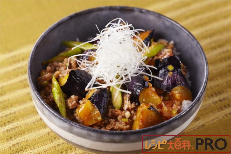 なすのチリソース丼