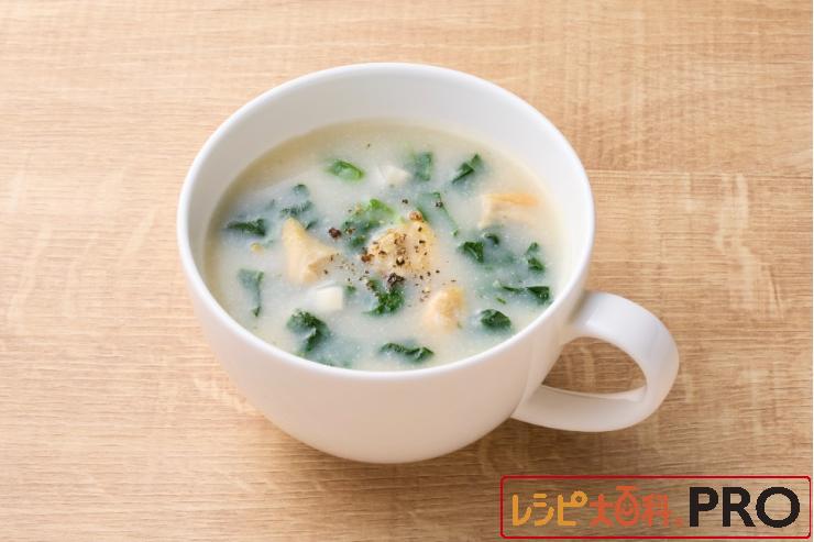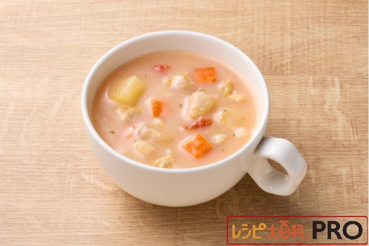 - ●あさりとポテトの具材が入った魚介風味豊かなスープです。