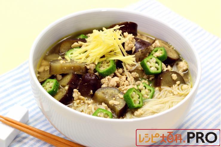 なすと鶏ひき肉のさっぱりカレーみそにゅうめん