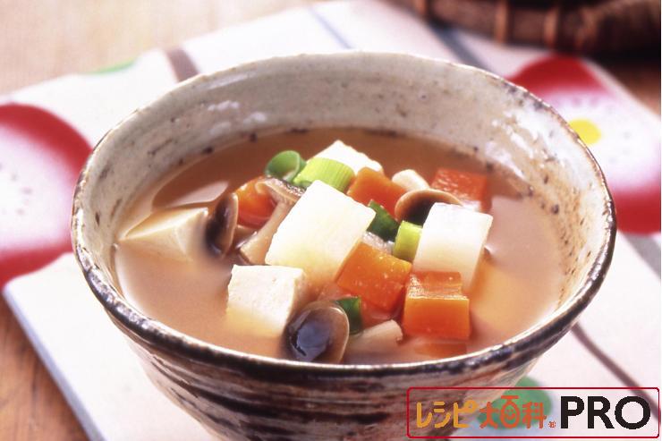 さつまいもとれんこんの具だくさん豆乳みそ汁