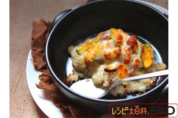 丸鶏使用がらスープで作る 秋の焼きリゾット