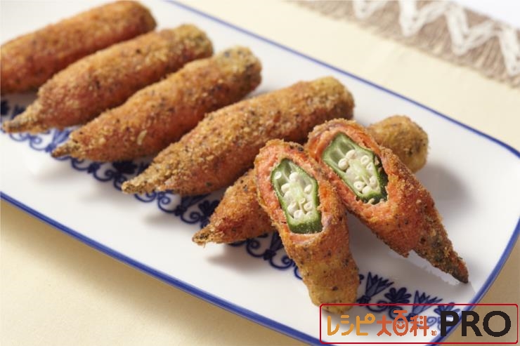 アスパラと焼きなすのごまあえ、ミルフィーユ仕立て