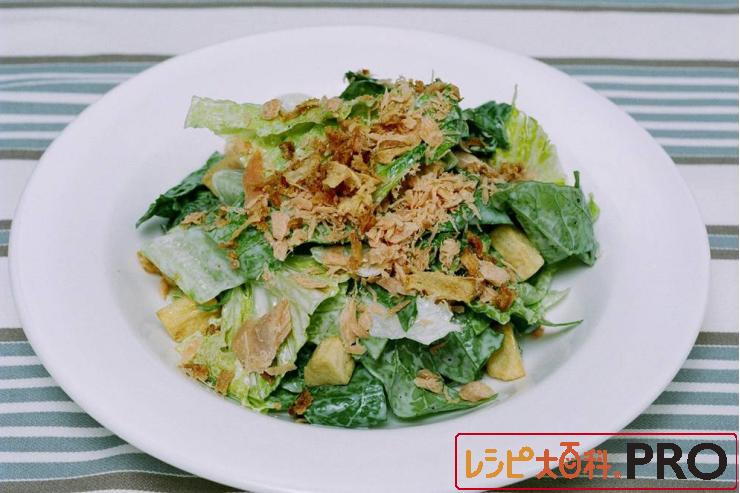 ボウルに(1)、(2)を入れて「トスドレ」シーザーであえる。