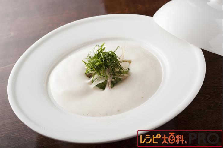 分量のお湯を沸かし、一度火を止めて泡だて器でかき混ぜながらクノール「クッキングスープ」パンプキンクリームを溶かす。