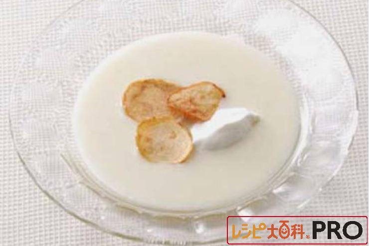 鍋にオリーブオイルを熱し、Bを炒め、Aを加えて温め、ミキサーにかけ、冷蔵庫で冷やす。