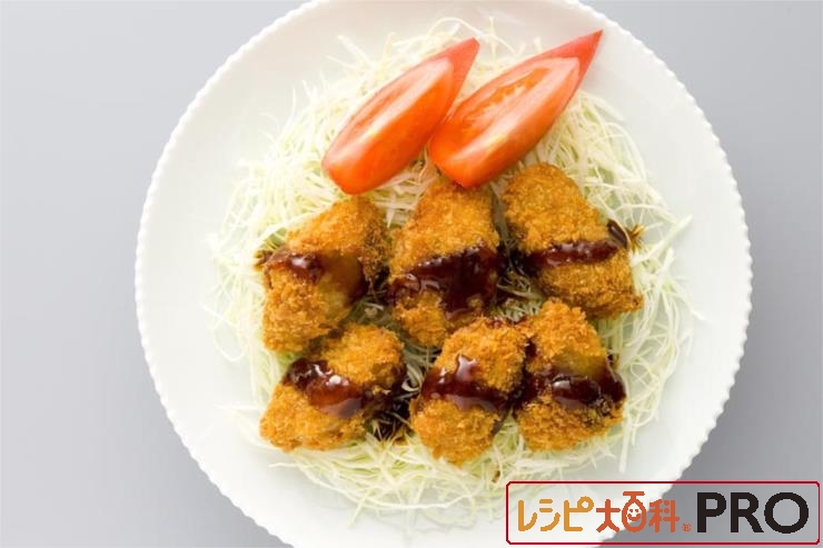 (1)にAで衣をつけ、揚げ油で揚げる。