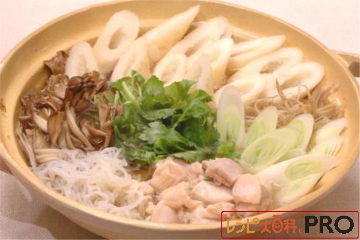 鍋にB、ごぼうを入れ、沸騰したら鶏肉を入れる。