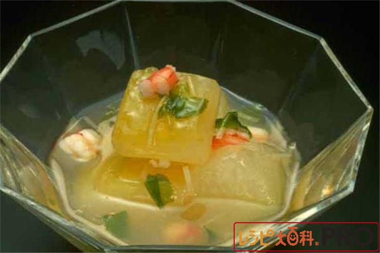 冷やしたとうがんを器に盛りつけ(3)のあんをかける。