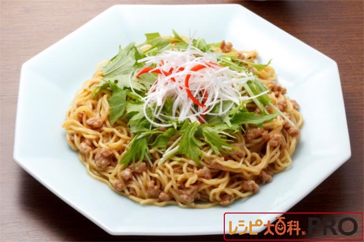 (3)の麺をしっかり水気をきって(2)とあえる。