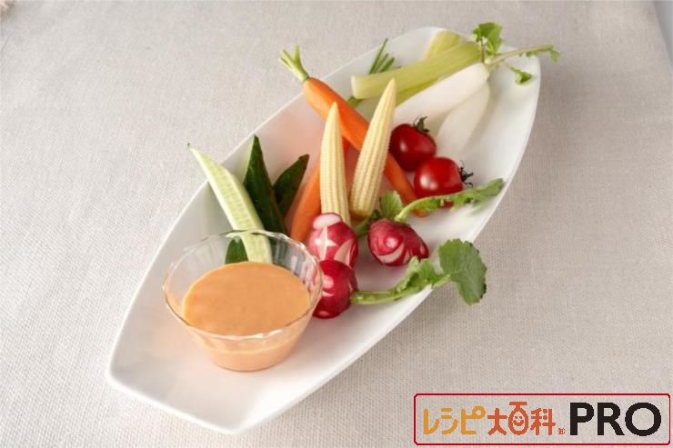 「GABANスパイスソース」スパイシーオーロラソースを器に入れる。