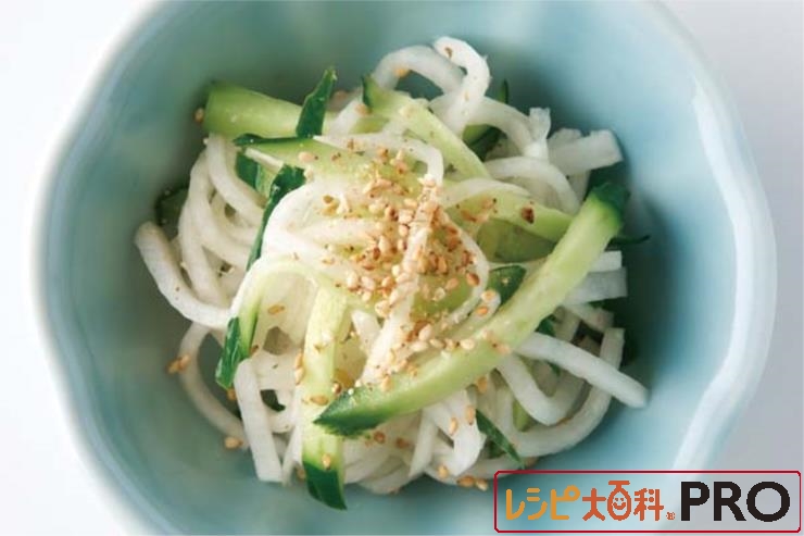 ボウルに大根、きゅうり、「ほんだしかつおだし」を手でひと和えし、しんなりと味をなじませる。