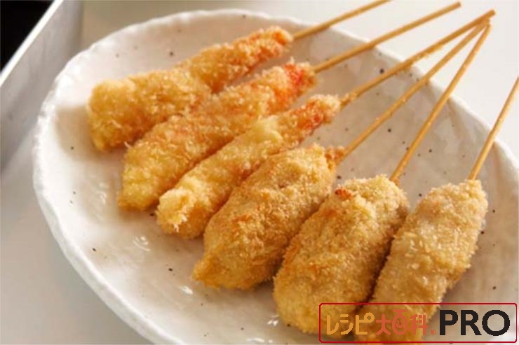 (1)を(2)にぐぐらせ、パン粉をまんべんなくつける。