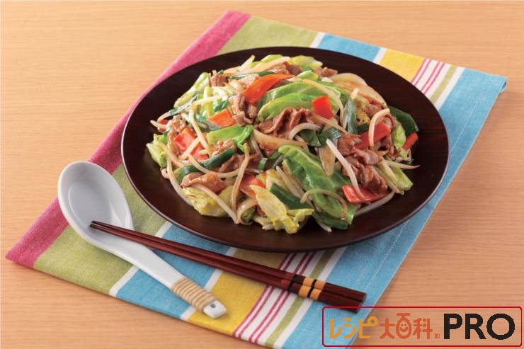 熱したフライパンにサラダ油をひき、豚肉を炒め、