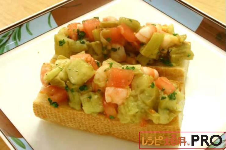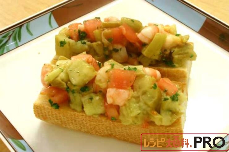 器にトーストしたバケットをのせ、(3)を盛り付ける。