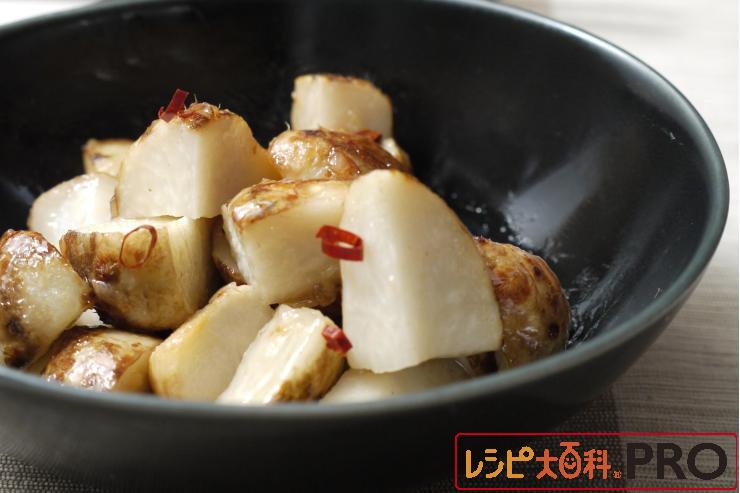 里いもの表面にうっすら焼き色がついたら、Bを加えて里いもに粘りが出るまでからめる。