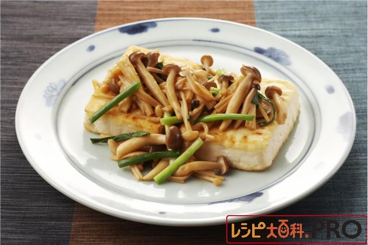 フライパンにバターを入れ、しめじ、えのきだけを炒めてAをふり、小ねぎを加えてサッと炒め、豆腐にかける。