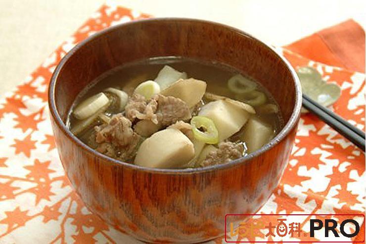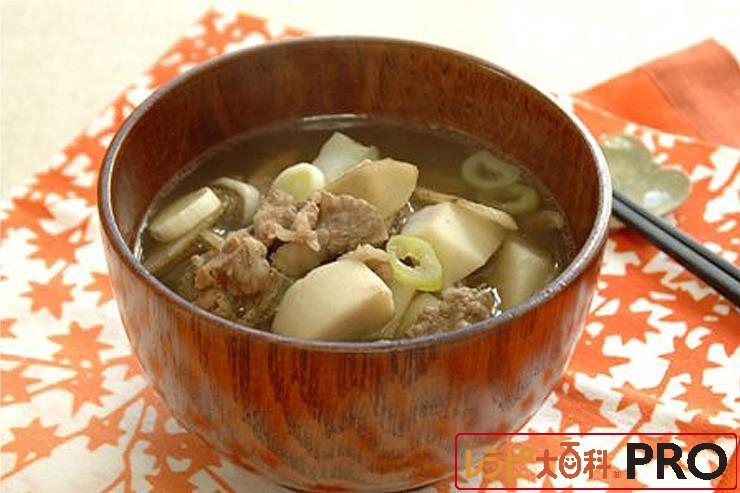 牛肉のだしが里いもにしみ込む具沢山汁。