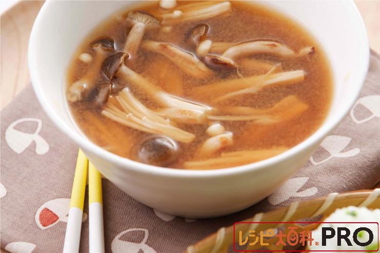 しめじ、えのきだけに酒をまぶし、熱したフライパンに並べ(油なしで)弱火でしんなりするまで焼く。