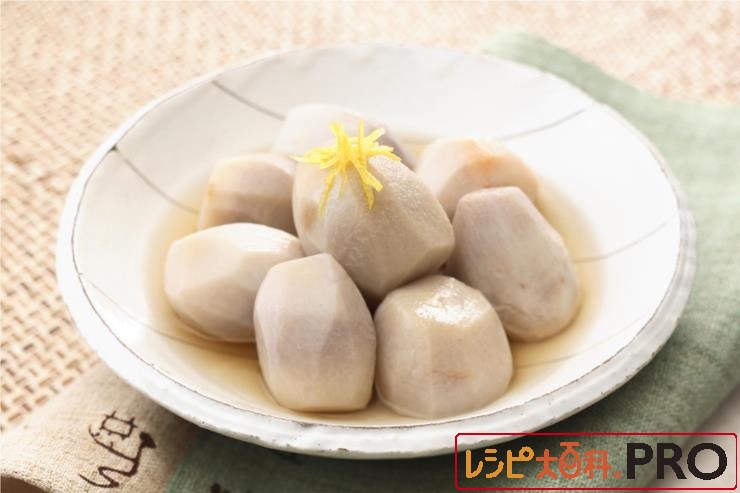 里いもは皮をむいて大きければ半分に切り、塩少々を加えた湯で弱火で10分ゆでる。水にとってそっと洗い、ぬめりを取る。