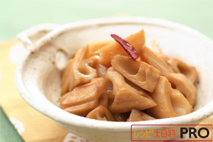 食物繊維たっぷりのれんこんを甘辛く炒め、ごはんやお酒のおともに。