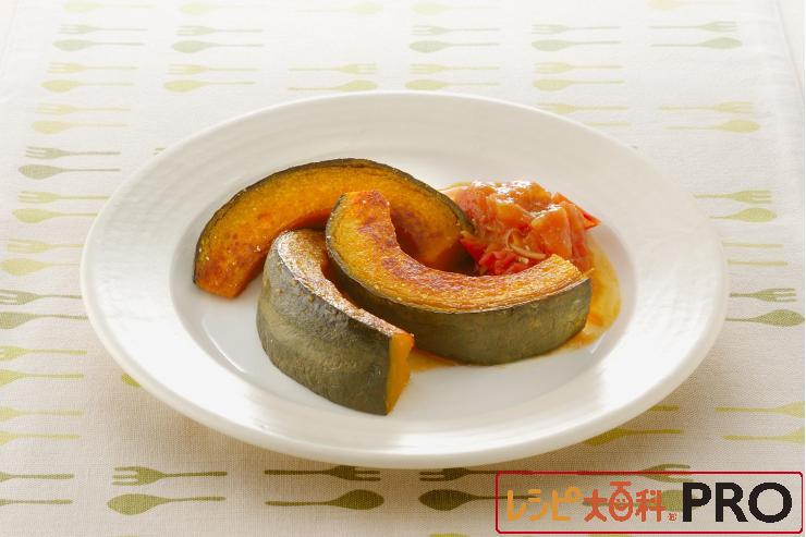 フライパンにオリーブオイル少々をたし、しょうがをサッと炒め、トマト、Aを加えてひと煮立ちさせ、かぼちゃにかける。