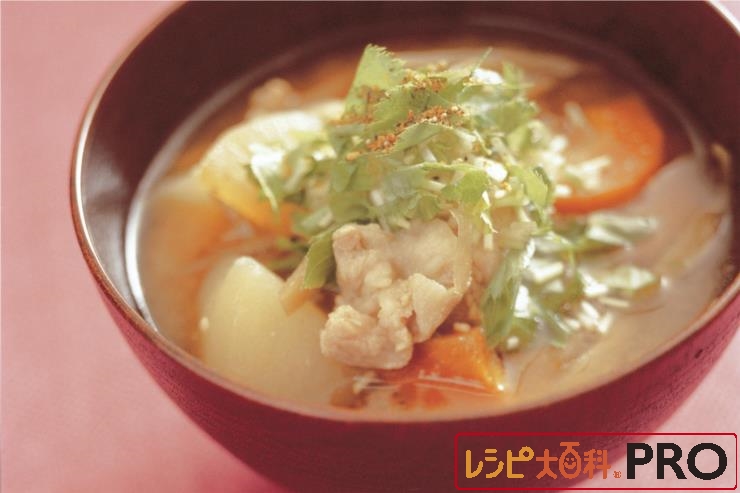 鍋にAを入れて火にかけ、沸騰したら、豚肉、こんにゃくを加えてアクを取りながら野菜がやわらかくなるまで煮る。