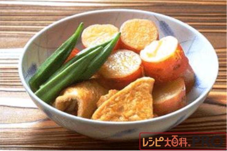 Cを加え、さつまいもがやわらかくなるまでゆっくり煮る。最後にオクラを加え2~3分煮て火を止める。