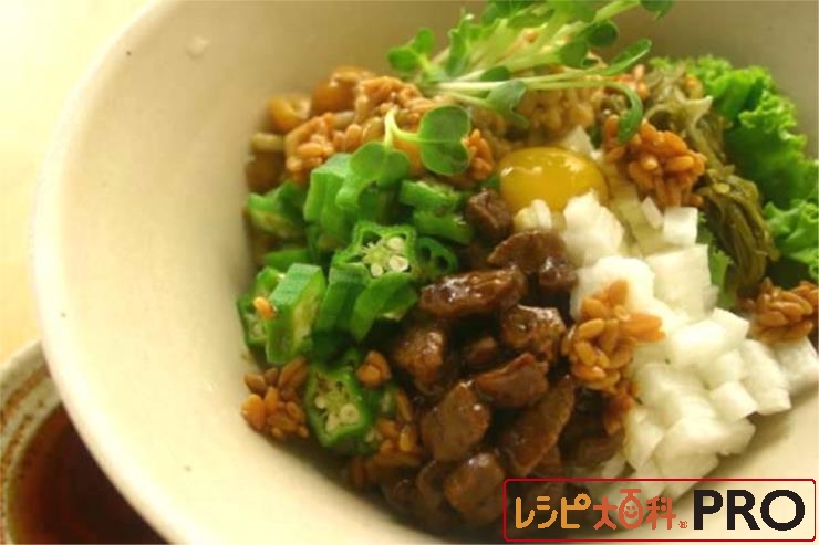牛肉の赤身を醤油麹で味付けし、ネバネバ食材でスタミナアップ。