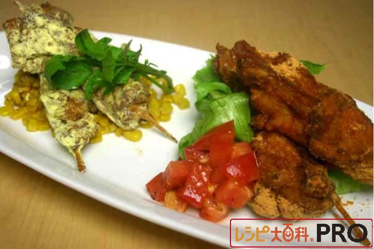 唐揚げ串2本分にそれぞれA・Bをまぶす。