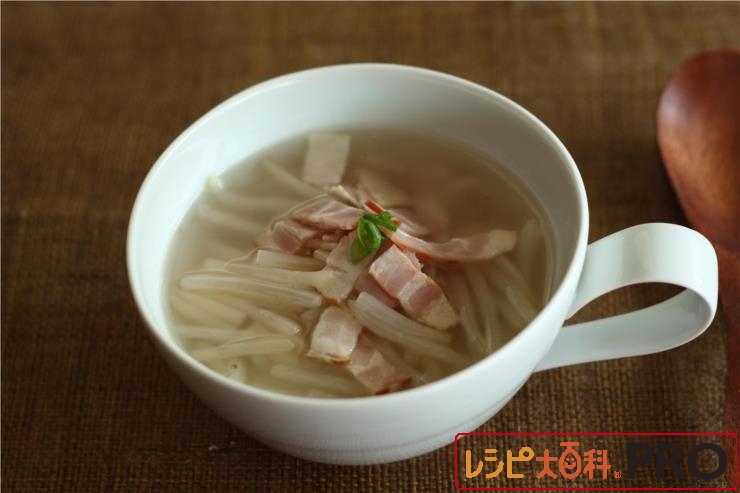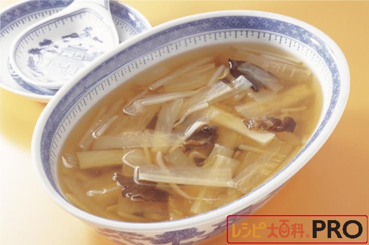 「丸鶏がらスープ」を加え、しょうゆで味を調える。もやしを加えてひと煮立ちさせる。