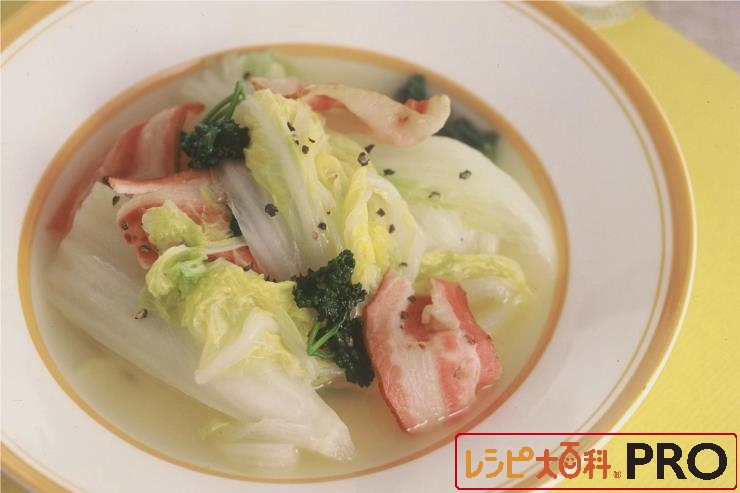 白菜の甘みとベーコンの塩加減がちょうどよいスープ煮