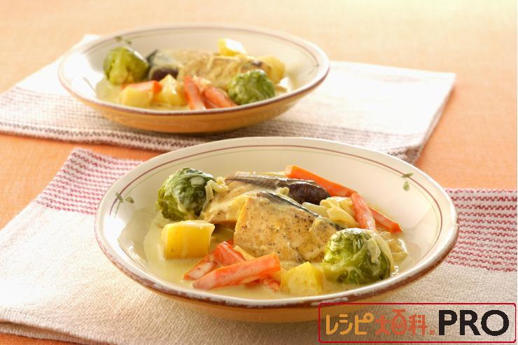 Aで下味をつけたぶりを並べ入れ、Bを加え、カレー粉をふり、煮立ったら弱火にし、フタをして12~13分煮る。