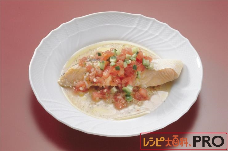 器に(1)のさけを盛り、Cを合わせた香味ソースをかけて上からDを散らす。