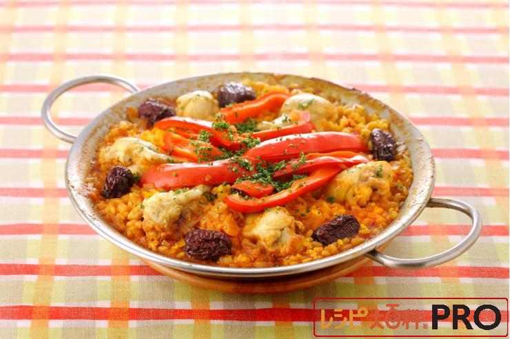 パエリアパン(直径22cm)にオリーブオイルを中火で熱し、Bを入れて炒める。