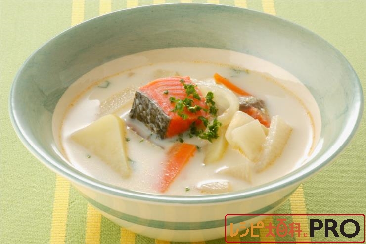 じゃがいもとさけの具だくさんミルクスープ
