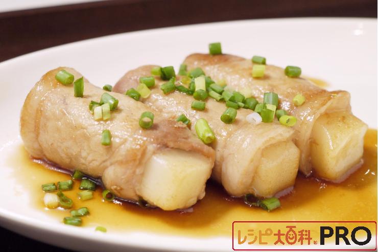餅に豚肉を巻き、油を熱したフライパンに巻き終わりを下に並べ、全体にうっすらと焼き色をつけ、Aを加えてからめる。