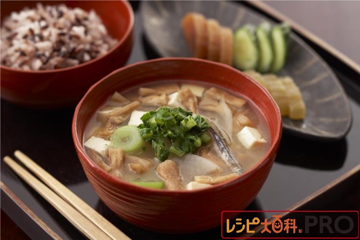 新潟の郷土料理。ずいきが入ったお味噌汁。