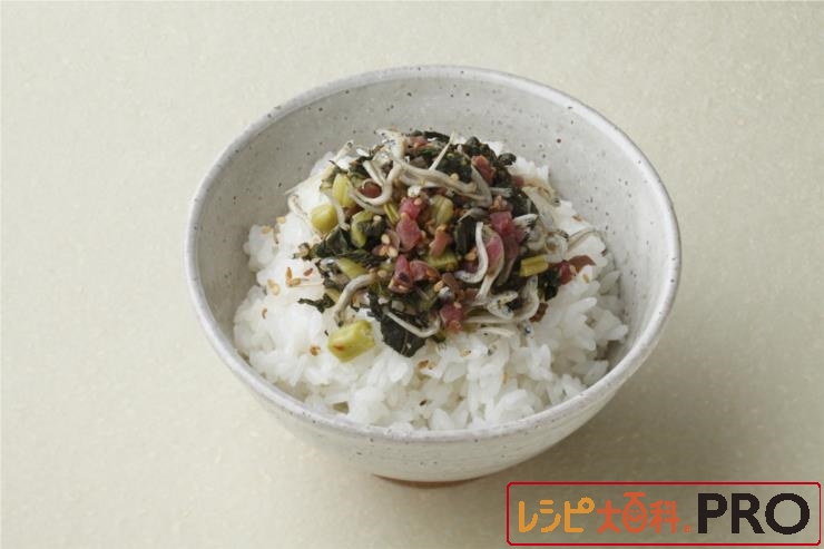 香ばしい魚の骨やちりめんじゃこと酸味のある漬物の味わいをバランスよくまとめる「ほんだし®いりこだし」