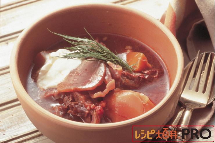 牛肉は軽く塩・こしょうをする。煮込み鍋にラードを熱し、牛肉を入れて表面に焼き色をつけ、取り出しておく。