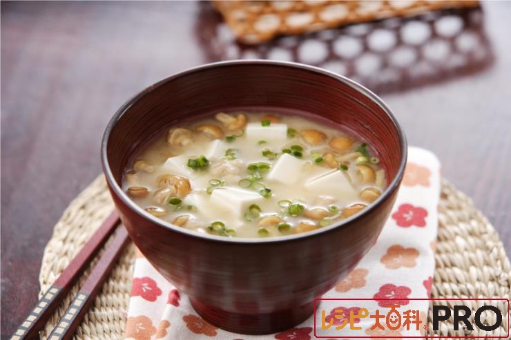 鍋に移し入れ、「ほんだし® かつおだし」を加えて火にかける。煮立ったら豆腐、なめこを加えて温める。