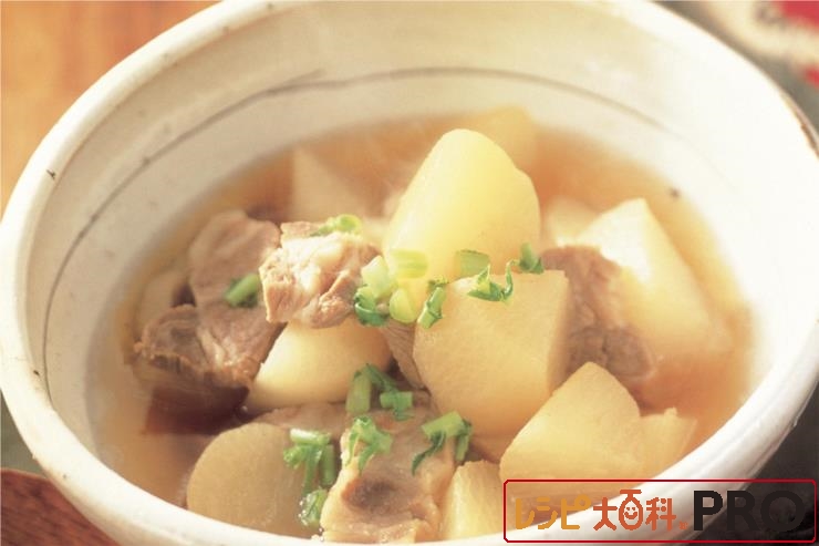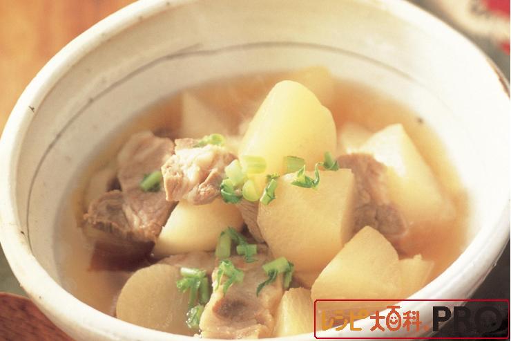 豚肉は酒をふり、鍋にAとともに入れて火にかけ、沸騰したらアクを取り、Bを加える。落としぶたをして、弱めの中火で20分煮る。