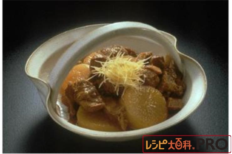 鍋に油を熱し、豚肉を入れ、ころがしながら表面に焼き色をつける。大根を加えて炒め、ヒタヒタの水、