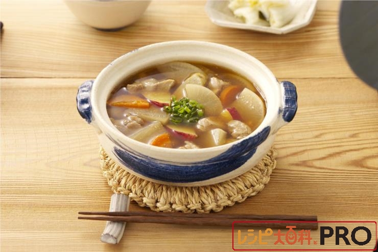鶏肉や根菜がたっぷり入った具だくさん汁